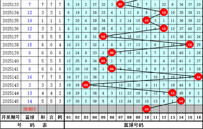 蓝球分析:上期开出蓝球号码14,蓝球遗漏值为19,温冷蓝球近期开出比例较高,本期防冷码蓝球继续解冻,参考蓝球号码10。
