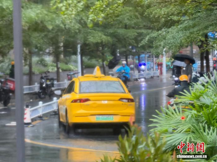 30日,雨中的广州街道。王坚 摄